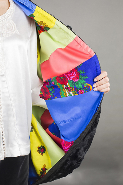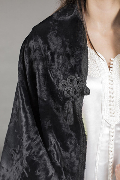 | Peps : La doublure est un tableau à la Elissar, toujours fidèle à sa touche patrimoniale revisitée! | Élégance : Un modèle qui va à toutes les morphologies avec la chic-attitude et la finition moderne du gilet! |